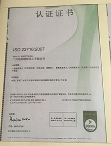 在美國和歐盟市場上銷售的所有化妝品,都必須要通過這個認證。廣州旭林化妝品 & 旭林精細化工有限公司OEM/ODM化妝品車間認證。